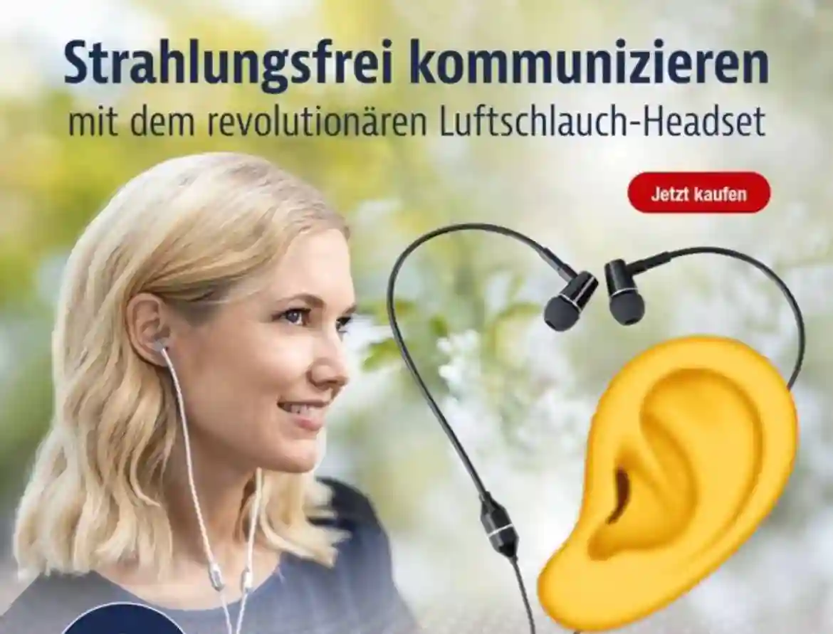 Bis zu 98 Prozent weniger Strahlung durch Schallübertragung via Luftschlauch Kein Lautsprecher im Ohr – keine EMF-Belastung im Kopfbereich Ideal für gesundheitsbewusste Nutzer, Kinder und Schwangere Integriertes Mikrofon mit klarer Sprachqualität Drei Funktionstasten am Kabel erlauben die bequeme Steuerung von Musik und Anrufen Geräuschisolierend dank weicher, hautfreundlicher Silikonaufsätze